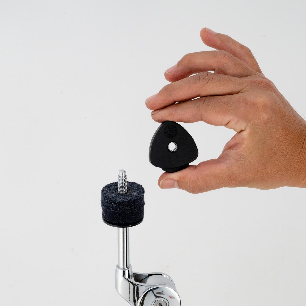 - Attach logo side up and turn clockwise to secure top cymbal felt. (Do not over tighten, cymbal should move freely without obstruction.)